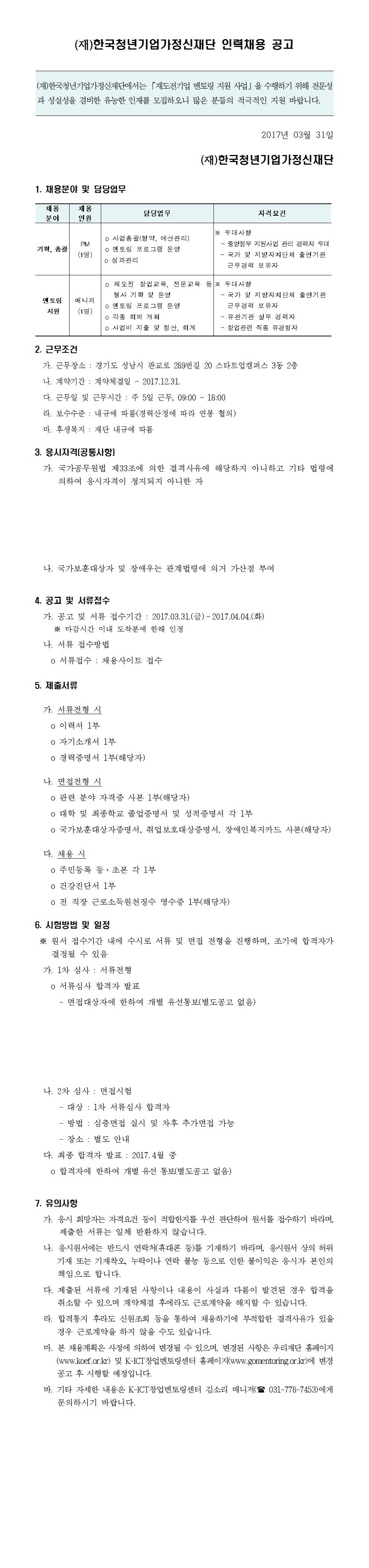 [채용공고]K-ICT창업멘토링센터 정부 지원사업 관리 채용 공고