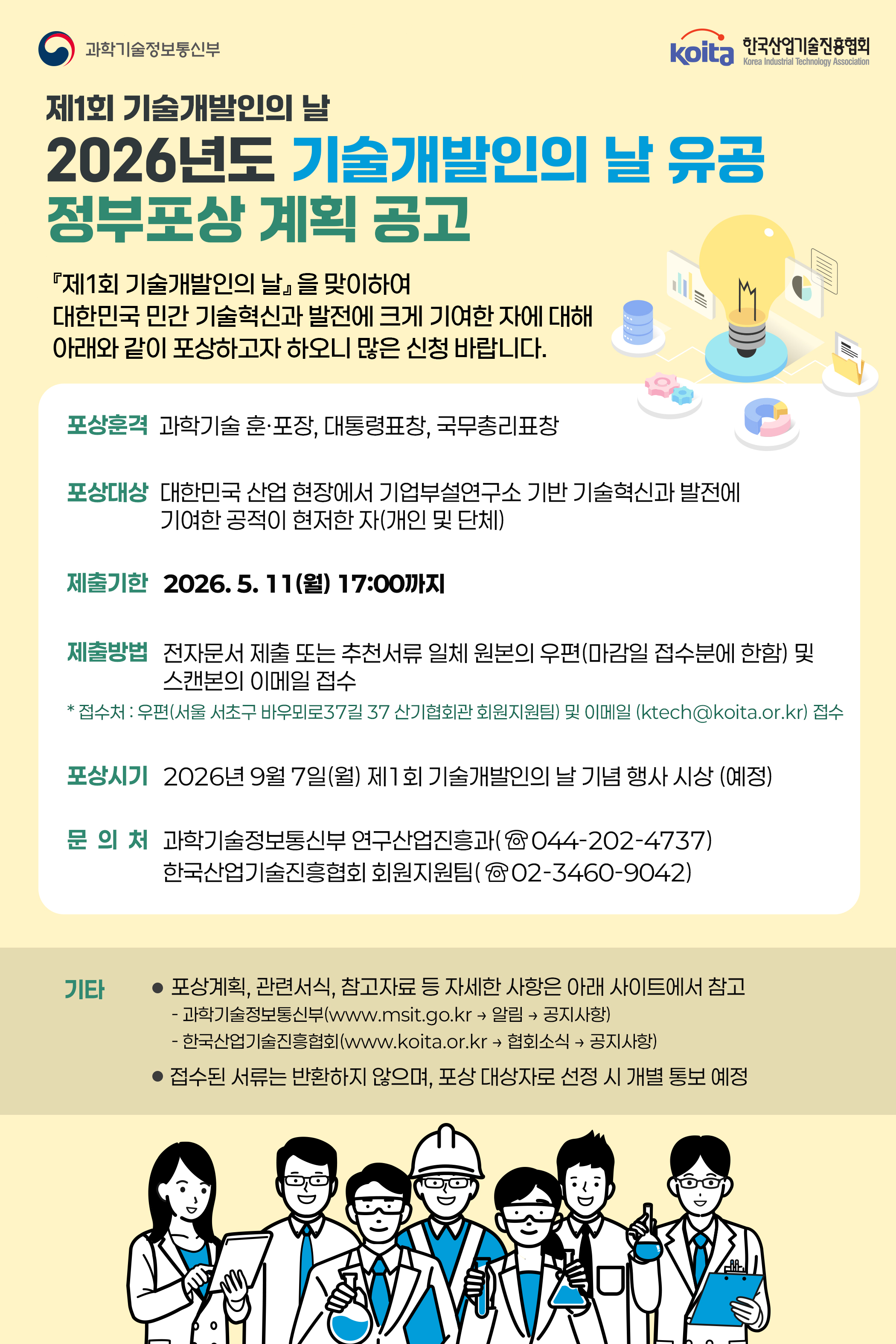 [외부] 「2026년 기술개발인의 날」 유공 정부포상